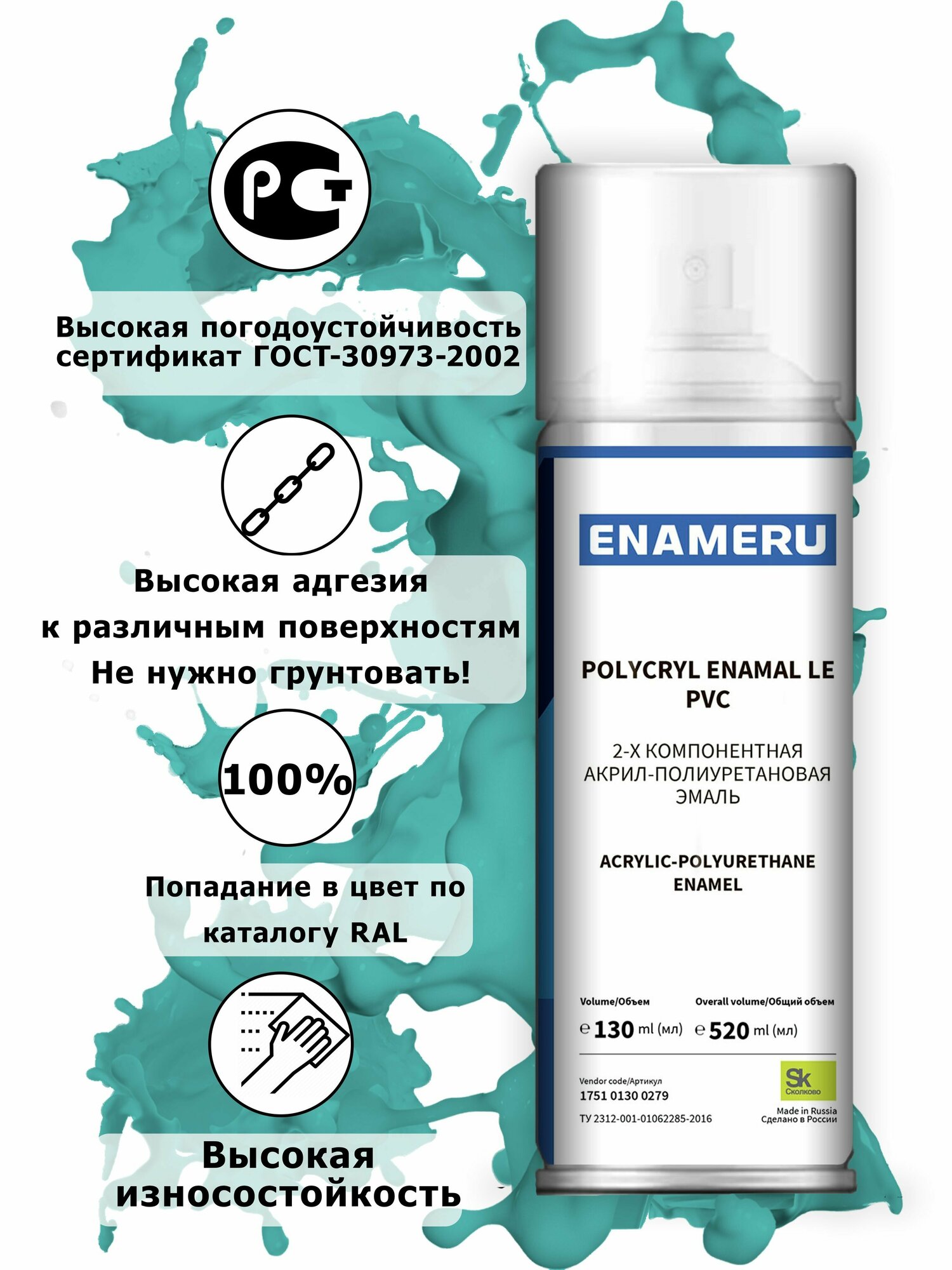 Аэрозольная краска для Стекла, Керамики Энамеру, Акрил-полиуретановая, Полуматовая, Бирюзово-синий RAL 5018, 0.52л 2 350 ₽