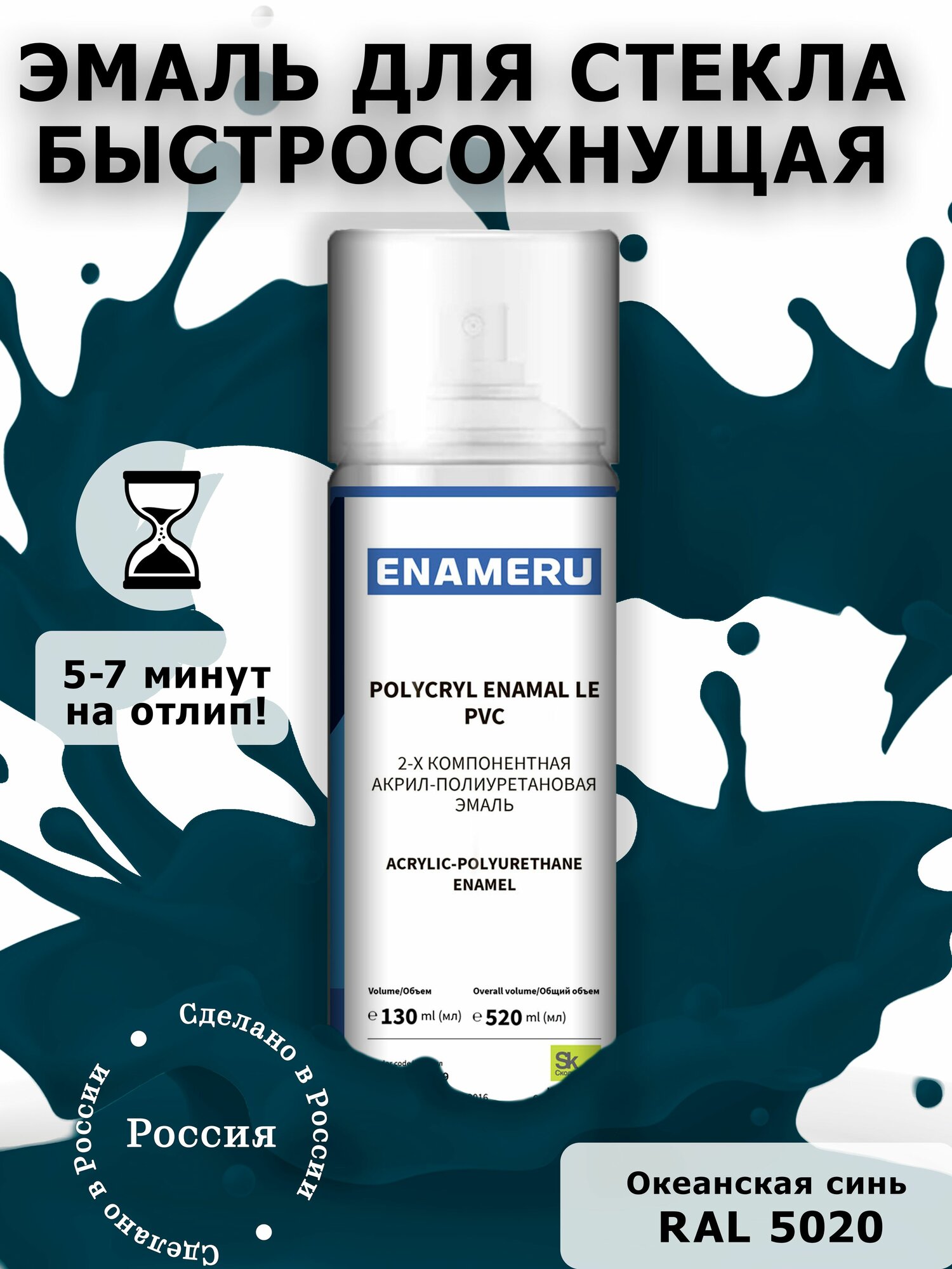 Аэрозольная краска для Стекла, Керамики Энамеру, Акрил-полиуретановая, Полуматовая, Океанская синь RAL 5020, 0.52л информация: