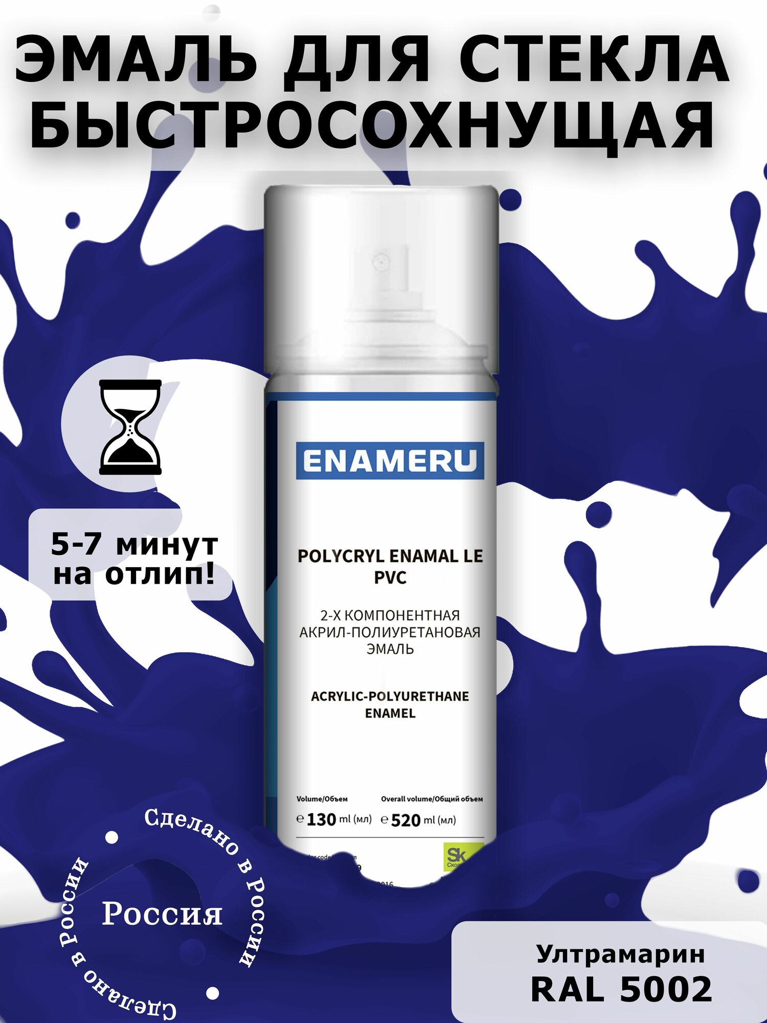 Аэрозольная краска для Стекла, Керамики Энамеру, Акрил-полиуретановая, Полуматовая, Ультрамарин RAL 5002, 0.52л информация: