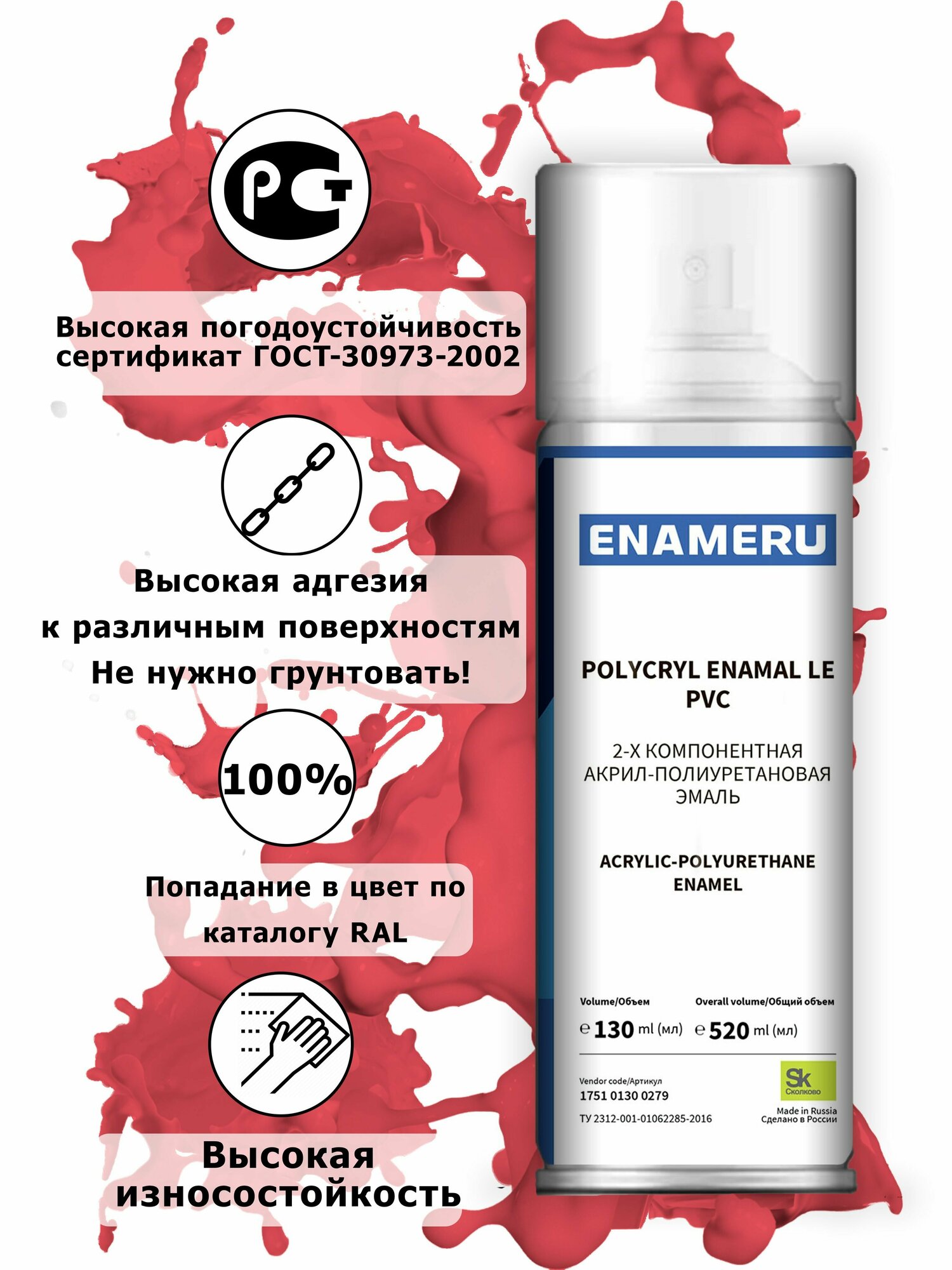 Аэрозольная краска для Стекла, Керамики Энамеру, Акрил-полиуретановая, Полуматовая, Сигнальный красный RAL 3001, 0.52л 2 350 ₽