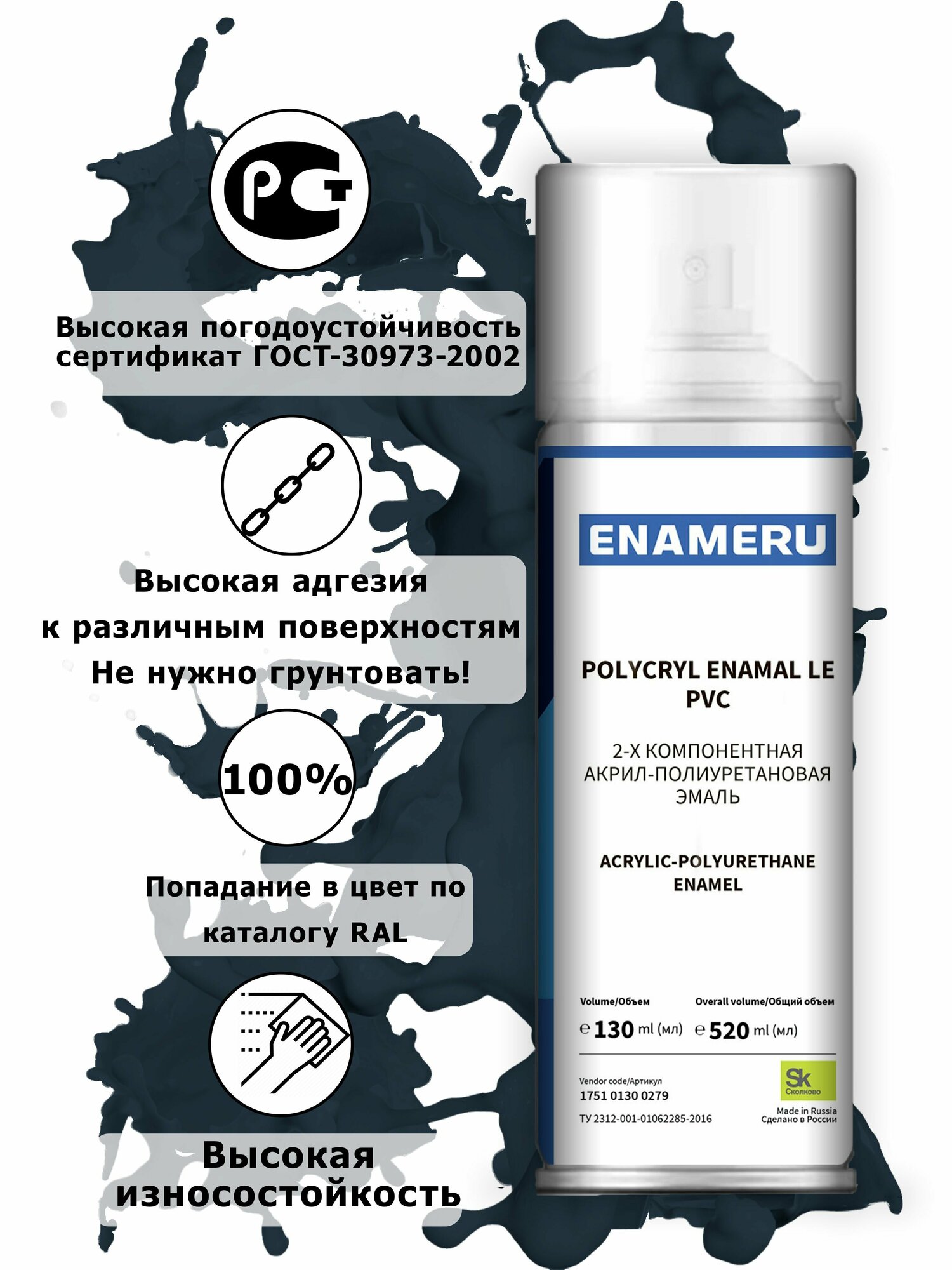 Аэрозольная краска для Стекла, Керамики Энамеру, Акрил-полиуретановая, Полуматовая, Черно-синий RAL 5004, 0.52л 2 350 ₽