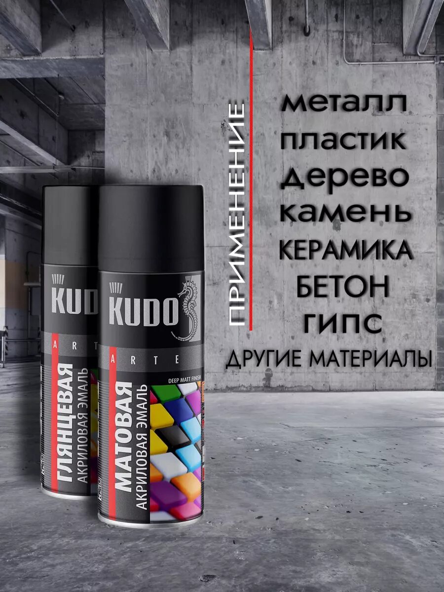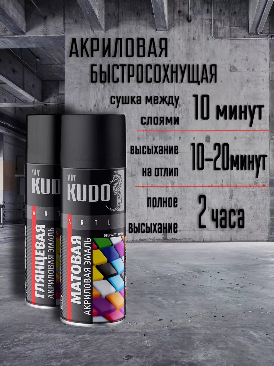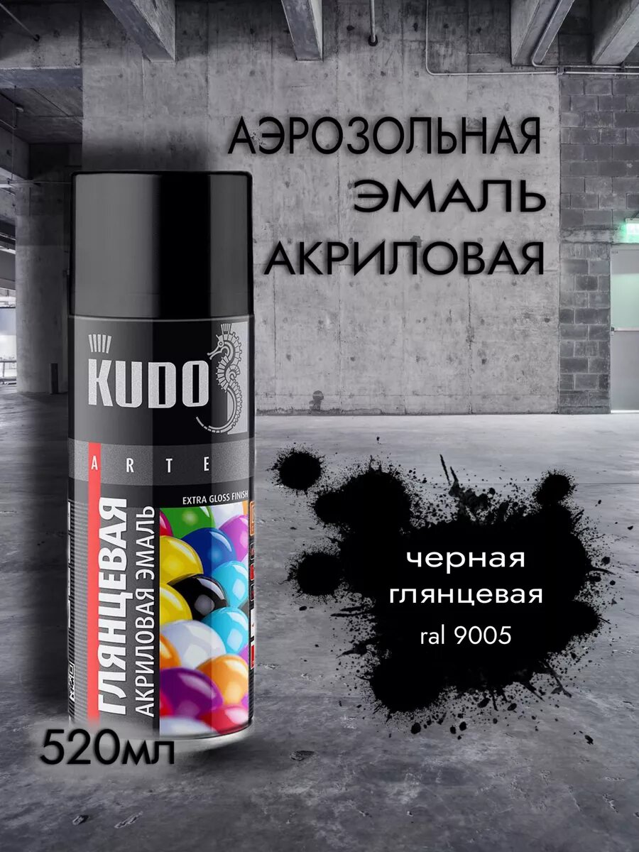 Отзывы на Краска черная глянцевая в баллончике акриловая KUDO, универсальная, 520мл