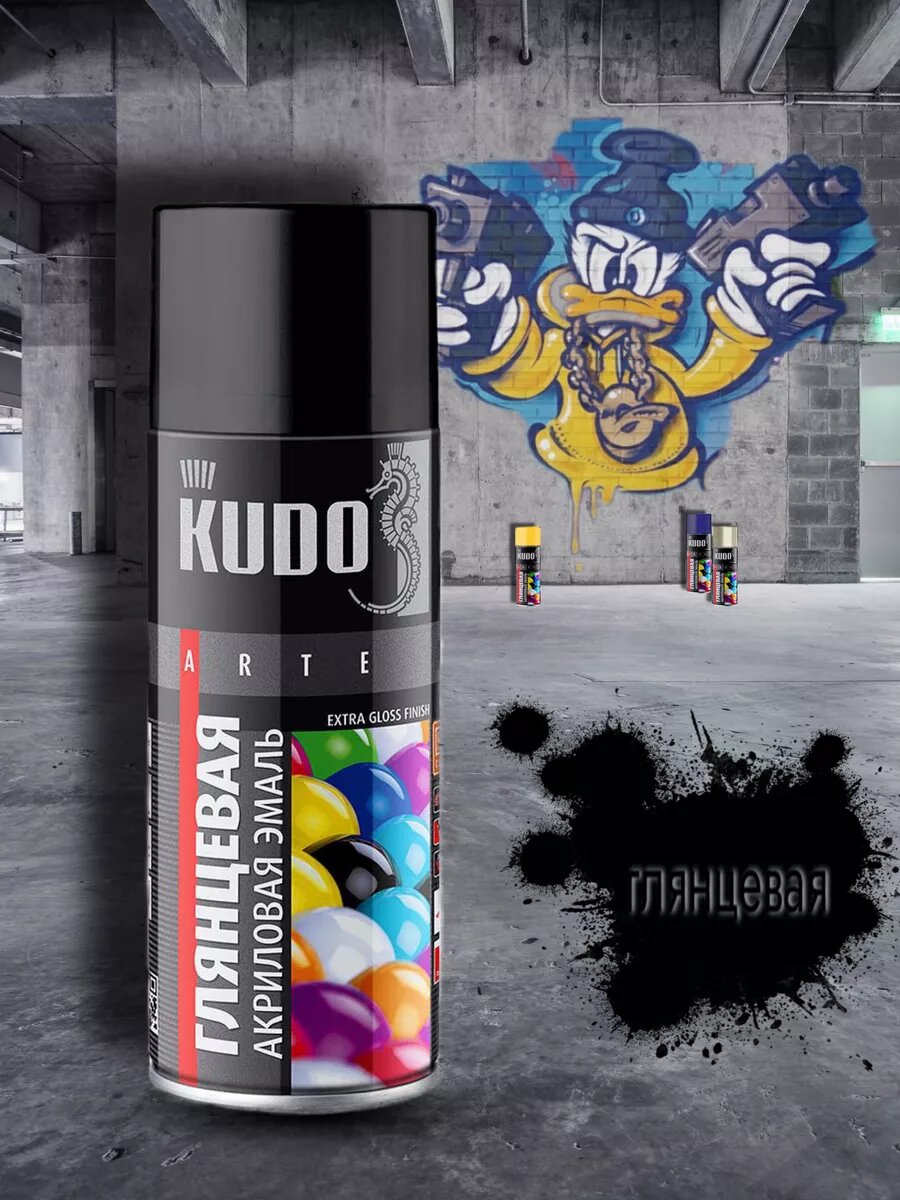 Краска черная глянцевая в баллончике акриловая KUDO, универсальная, 520мл информация: