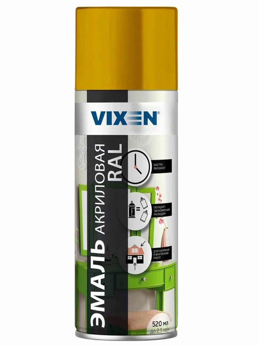 10 цен на Эмаль акриловая VIXEN VX31018 цинково-желтый (RAL1018) аэрозоль 520мл