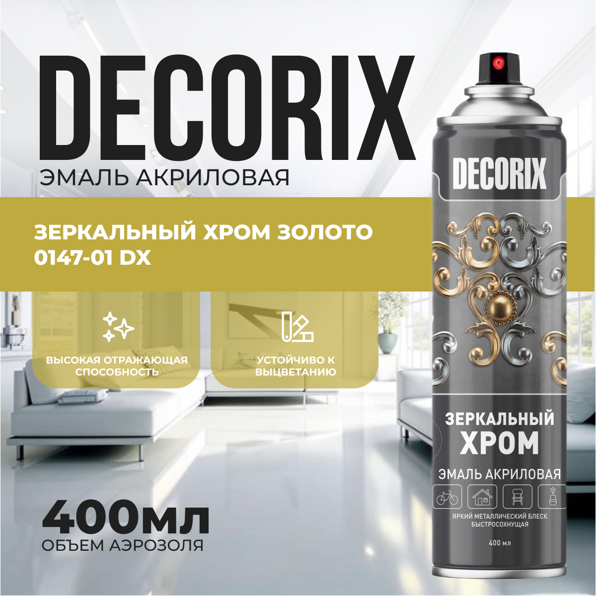 Акриловая краска Decorix зеркальный хром золото 400мл информация: