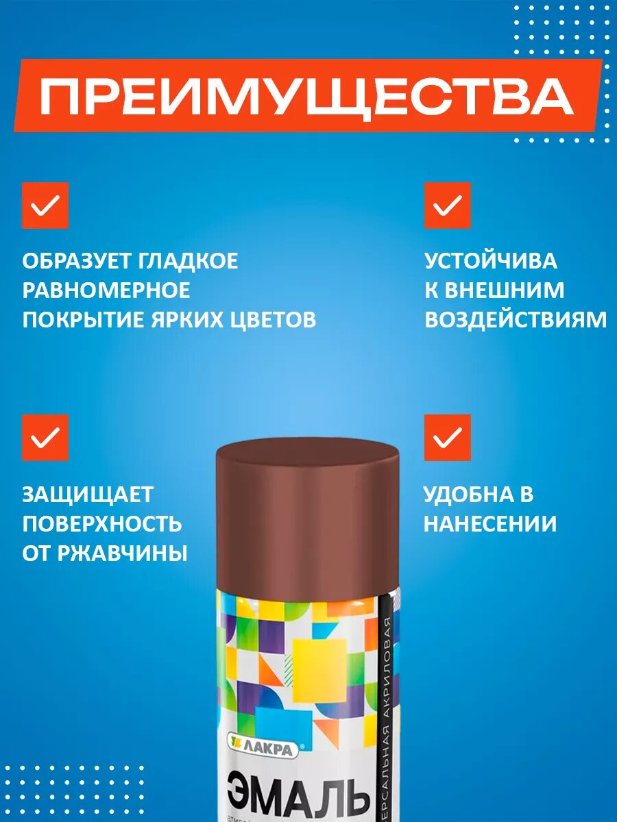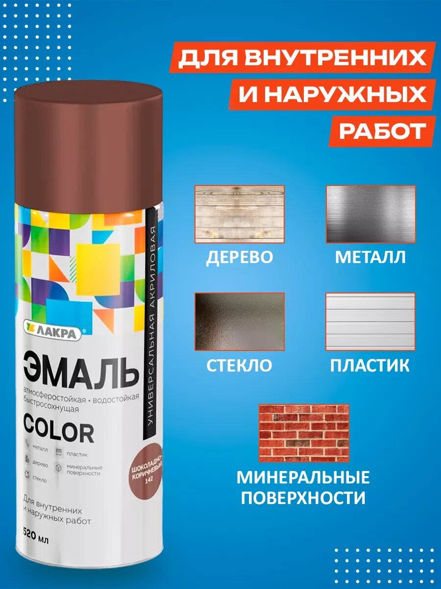 Отзывы на Аэрозольная краска Лакра для металла, дерева и пластика, шоколадно коричневый, акриловая, 520 мл