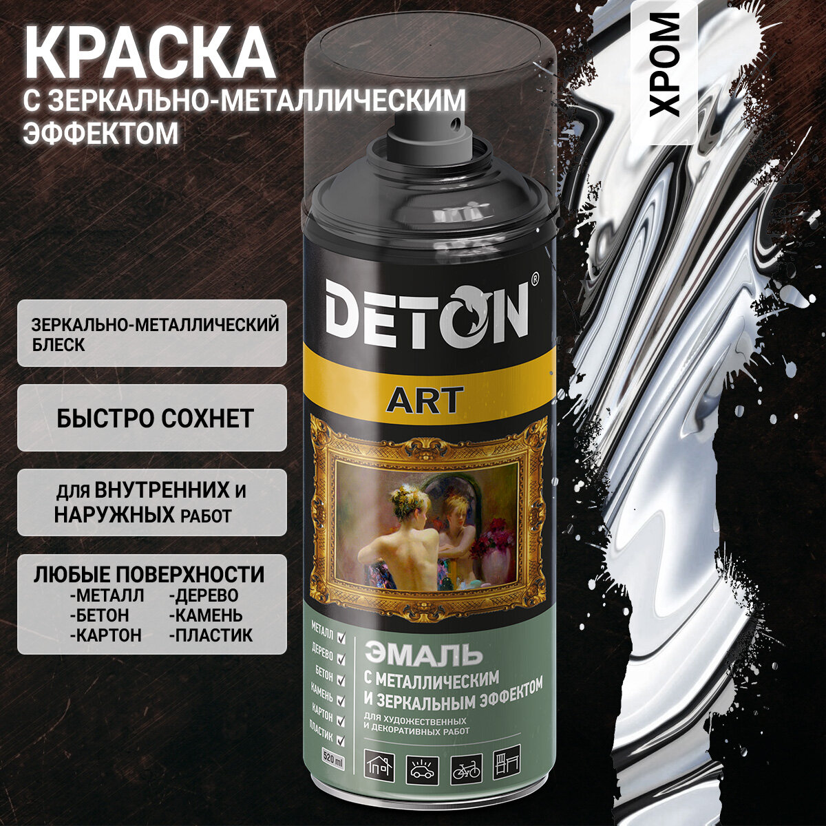 Хром краска с зеркально-металлическим эффектом DETON ART (аэрозоль, 520мл) информация: