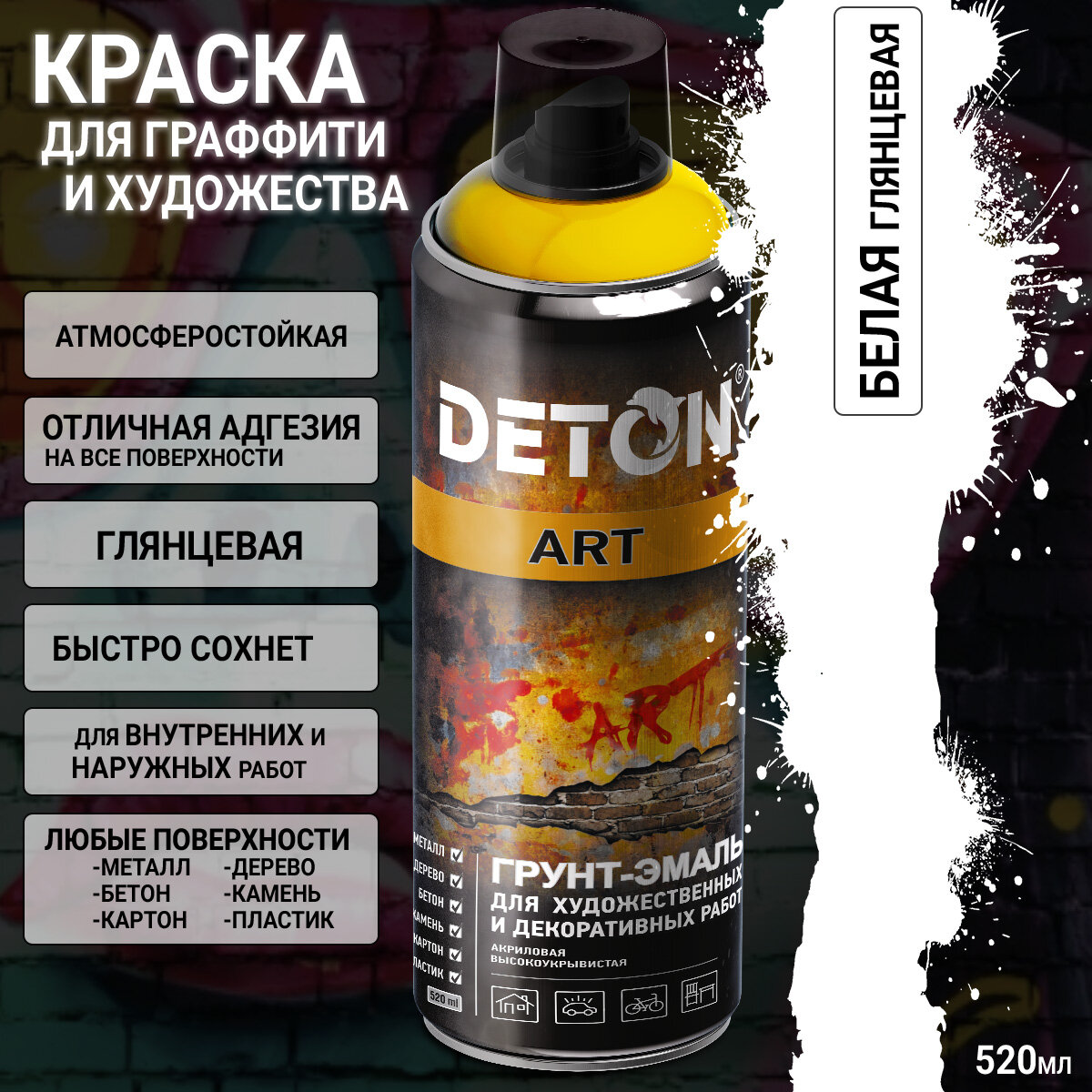 10 цен на Краска для граффити и дизайна БЕЛАЯ глянцевая универсальная DETON ART (аэрозоль, 520мл)