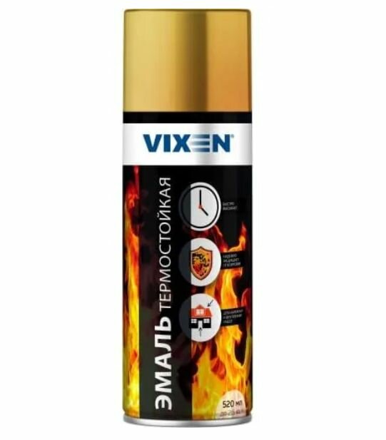 10 цен на Эмаль термостойкая Vixen золотая, аэрозоль 520 мл, VX53007