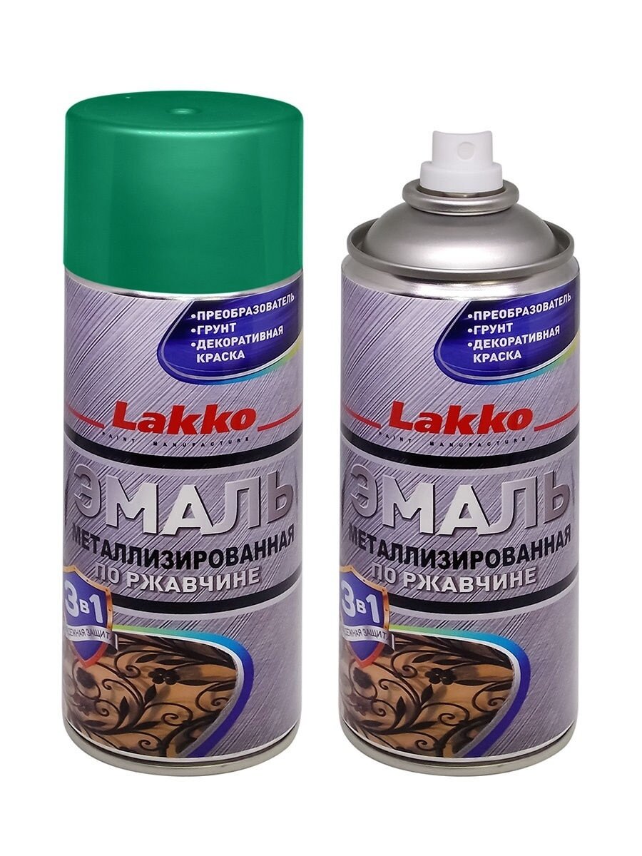 10 цен на Грунт-эмаль Lakko по ржавчине Антикор 3в1, атмосферостойкая, зеленый металлик, 520 мл