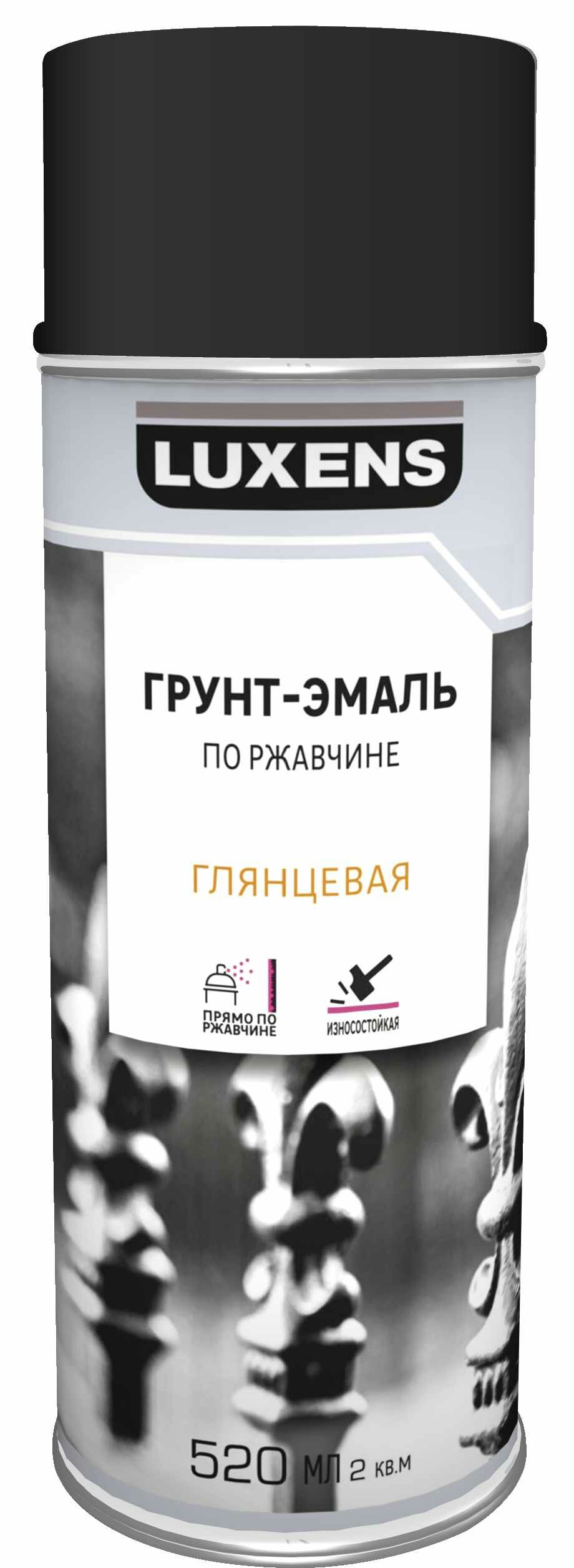 Грунт-эмаль аэрозольная по ржавчине Luxens глянцевая цвет черный 520 мл информация: