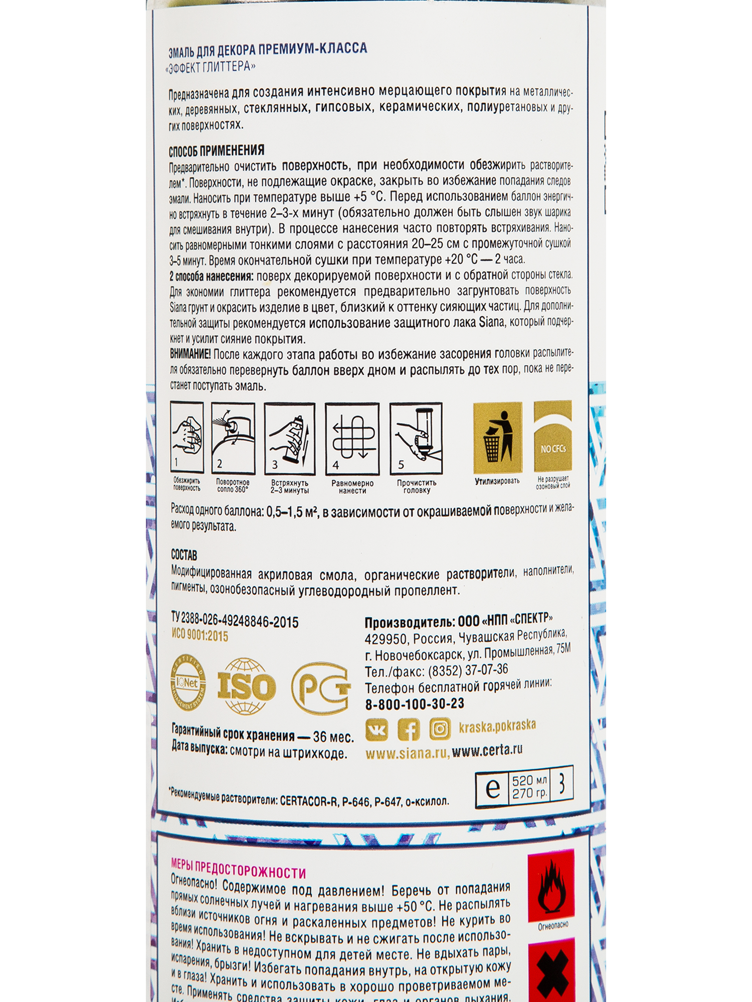 Краска аэрозольная Siana Глиттер цвет бенгальский огонь 520 мл информация: