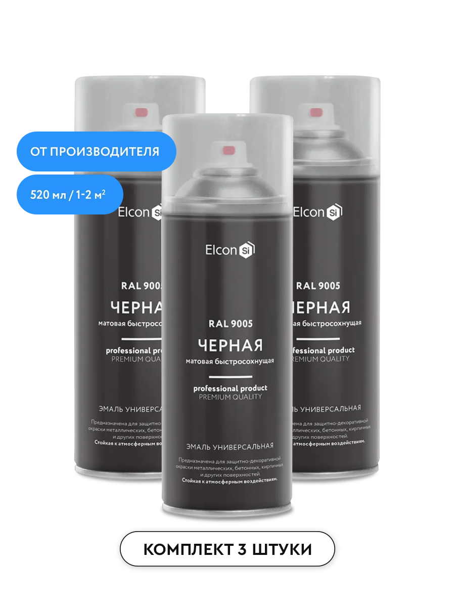 Универсальная акриловая эмаль ELCON RAL 9005 черная матовая аэрозоль 520 мл, 3 шт в упаковке информация: