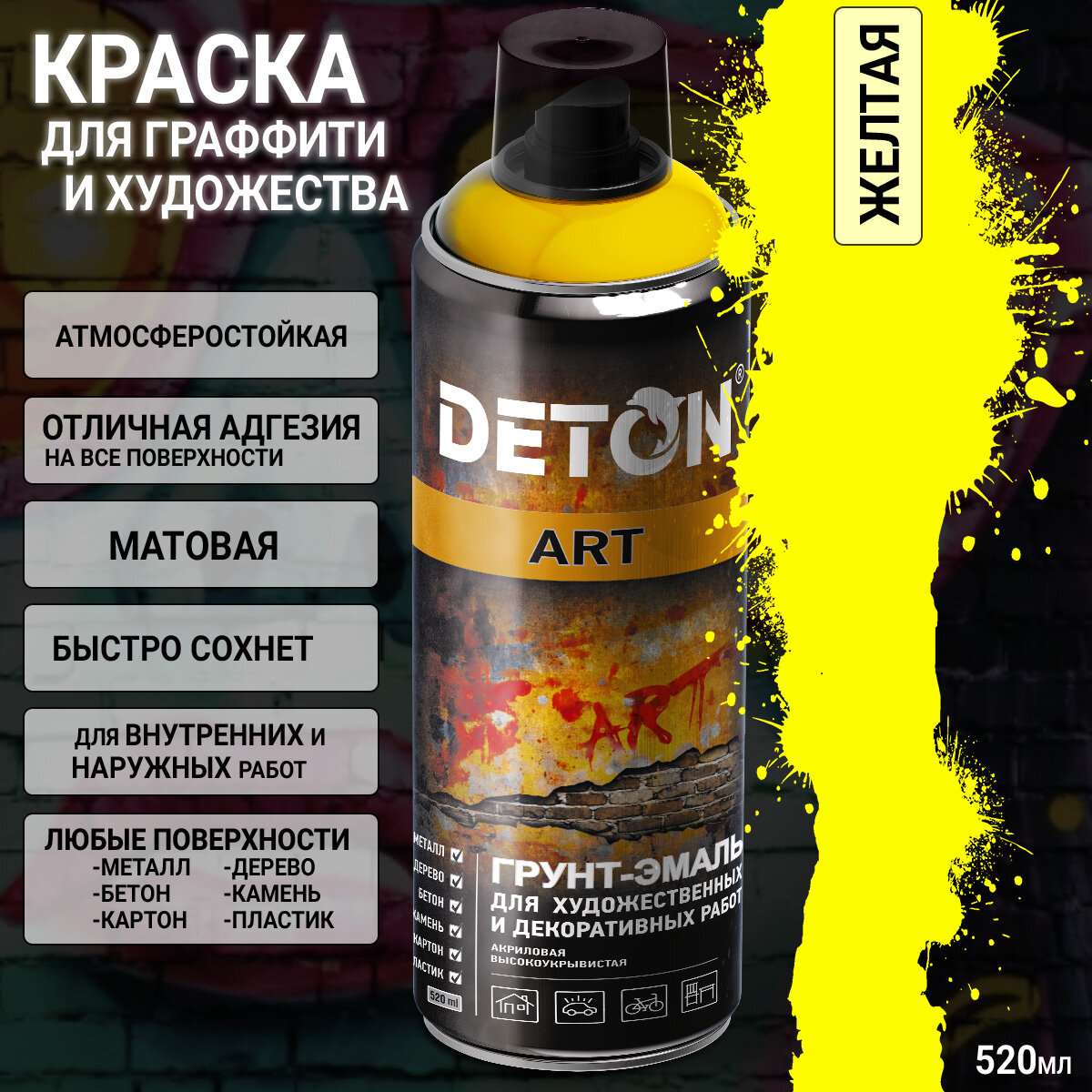 10 цен на Краска для граффити и дизайна желтая универсальная DETON ART (аэрозоль, 520мл)