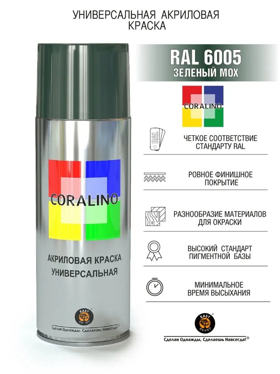 10 цен на CORALINO краска аэрозольная зеленый мох 520мл