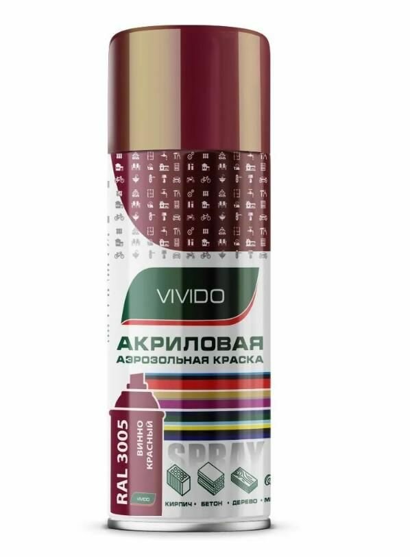 Краска аэрозольная акриловая RAL 3005 VIVIDO "винно-красный", 520 мл информация:
