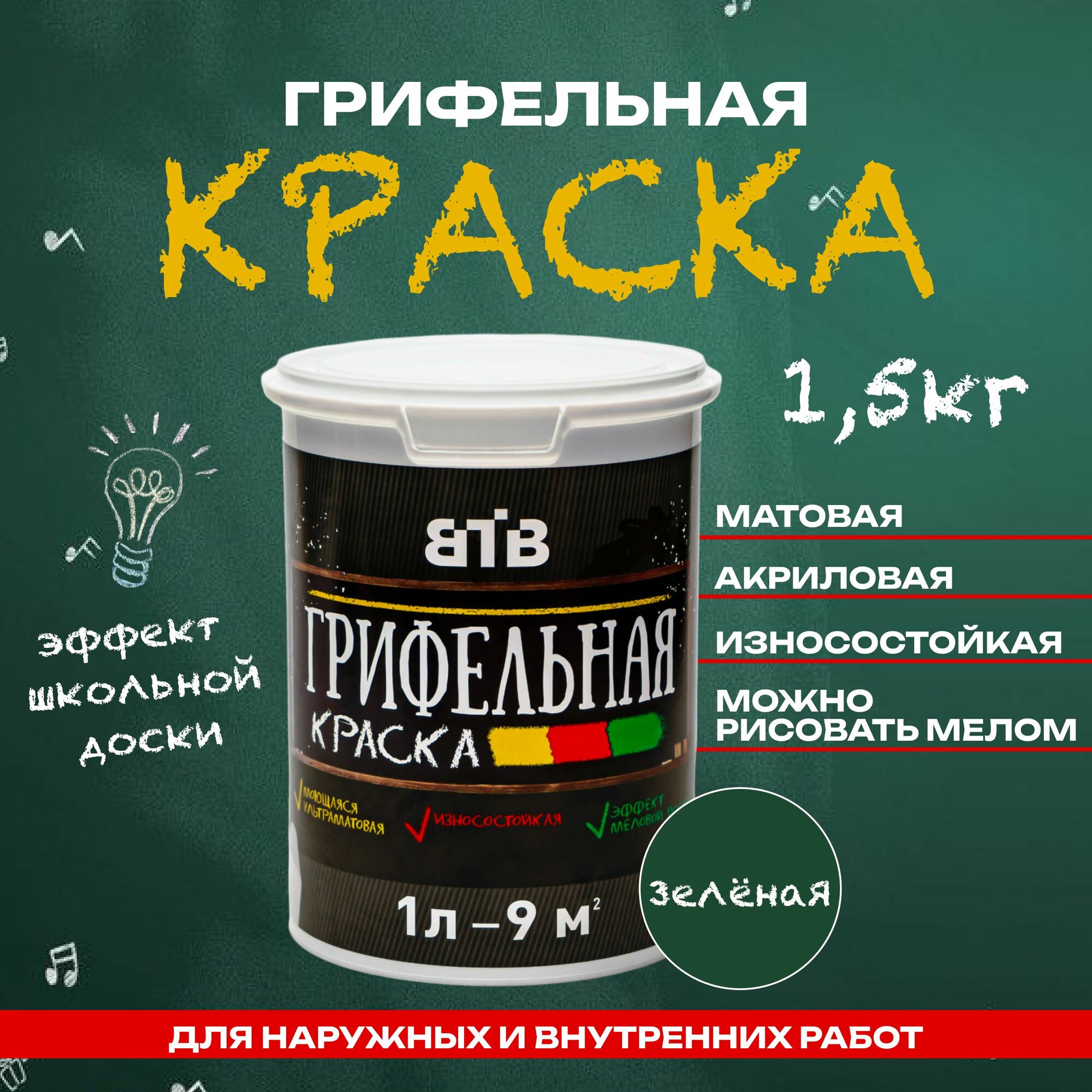 10 цен на Грифельная краска ВТВ с эффектом школьной меловой доски, 1л, зеленый, для стен, для интерьера и декора
