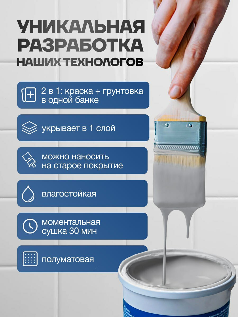 Краска для плитки в ванной TURY SW-10, влагостойкая, без запаха, оттенок Серая дымка 1,1 кг 1 500 ₽