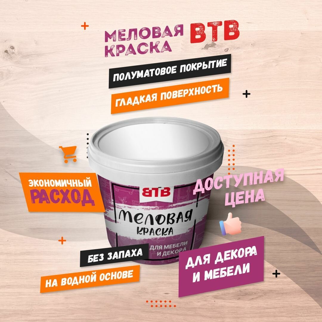Меловая краска для мебели и внутренней отделки ВТВ 0.3 кг, Гладкая, Акриловая, Полуматовое покрытие, Топленое молоко 398 ₽