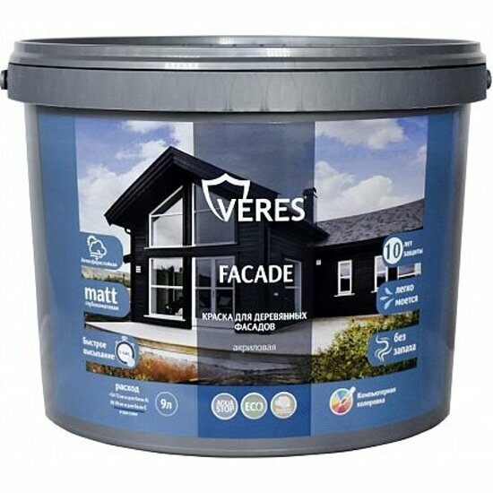 Отзывы на Краска для деревянных фасадов Veres Facade, акриловая, глубокоматовая, база С, бесцветная, 9 л