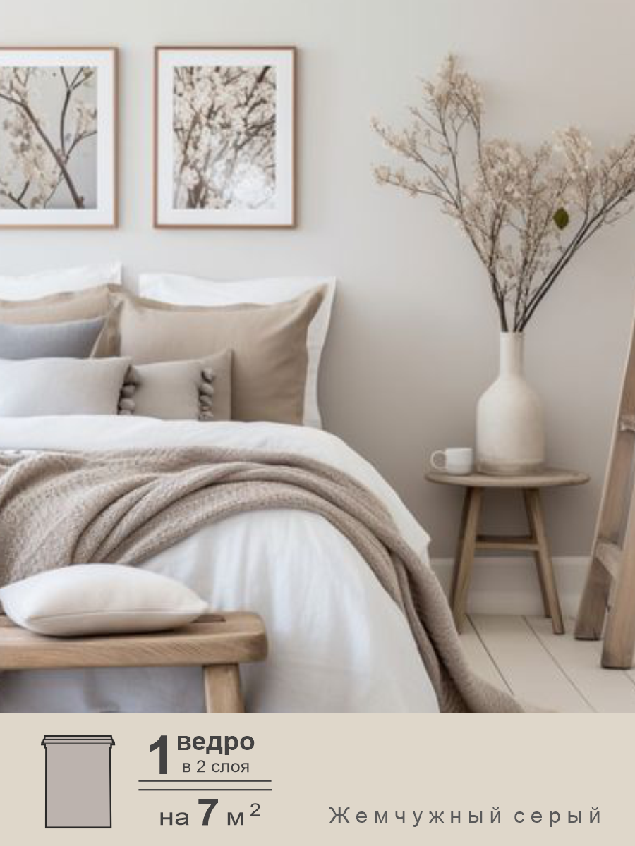 Акриловая краска для стен и потолков интерьерная без запаха моющаяся "Palizh" Жемчужный серый 1,4 кг информация: