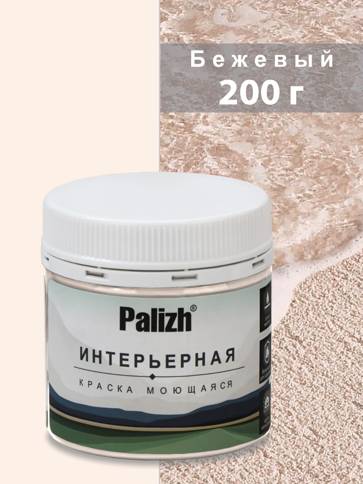 Акриловая краска для стен и потолков интерьерная без запаха моющаяся "Palizh" Бежевый 0,2 кг информация: