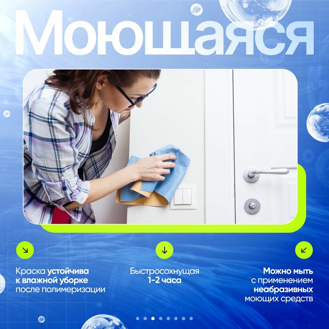 Краска для стен моющаяся КР, Быстросохнущая, Акриловая, Полуматовое покрытие, 14 кг, белый информация: