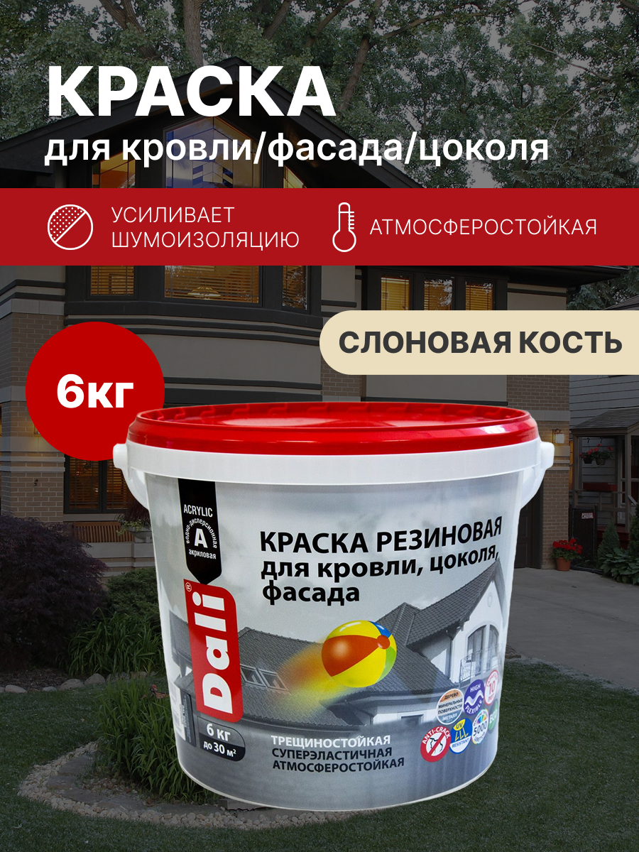 10 цен на Краска резиновая для стен и кровли, цоколя, фасада DALI слоновая кость 6 кг