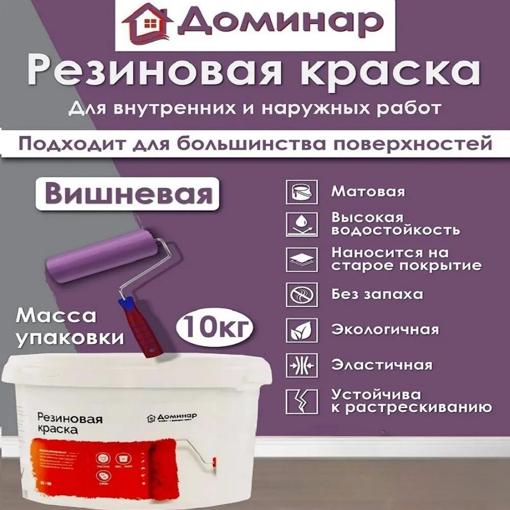 Резиновая краска для наружных, внутренних работ влагостойкая матовая БС 98 Доминар, вишневая, 10 кг информация: