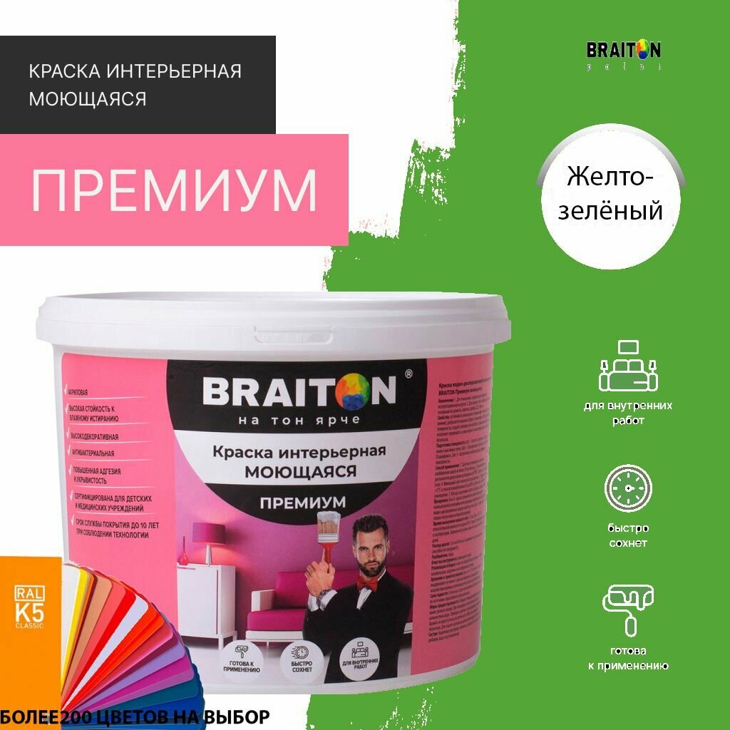 Краска ВД интерьерная BRAITON Премиум Моющаяся 1 кг. Цвет Желто-зелёный RAL 6018 информация: