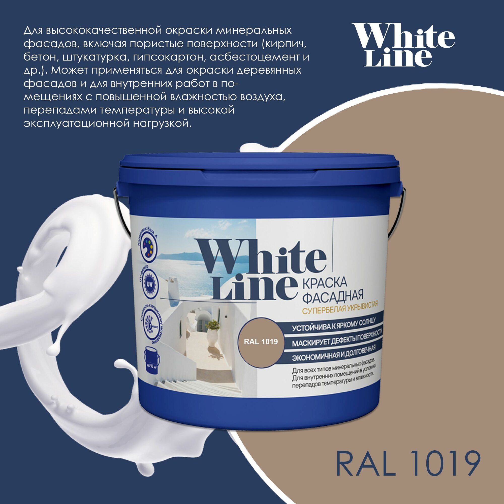 White Line Краска фасадная для наружных работ, укрывистая / акриловая, матовая, RAL 1019 Серо-бежевый, 3,4 кг информация: