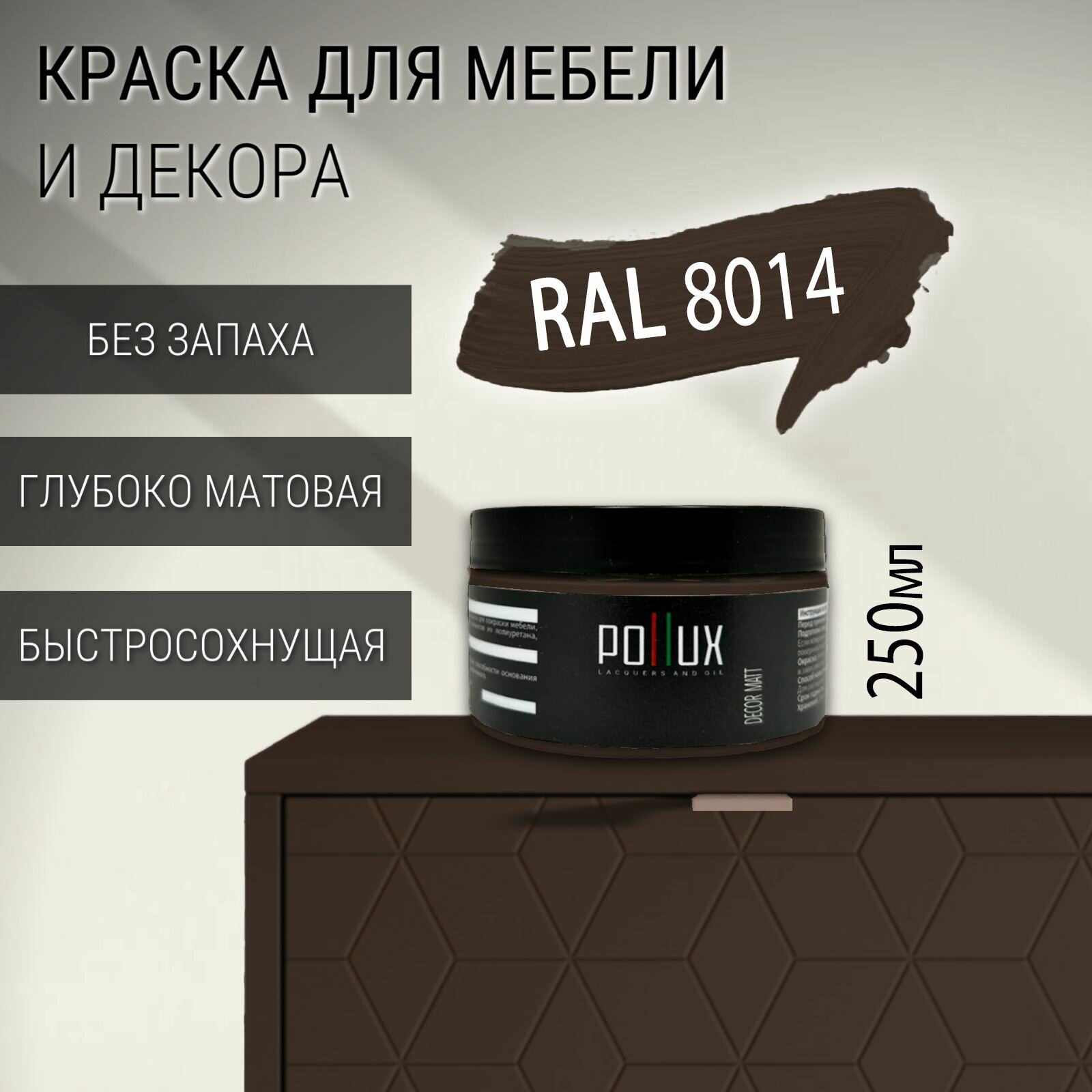 10 цен на Краска для мебели без запаха матовая быстросохнущая для кухни / дерева / декора акриловая Pollux Decor Matt, объем 0,25л, цвет сепия коричневый (RAL 8014)