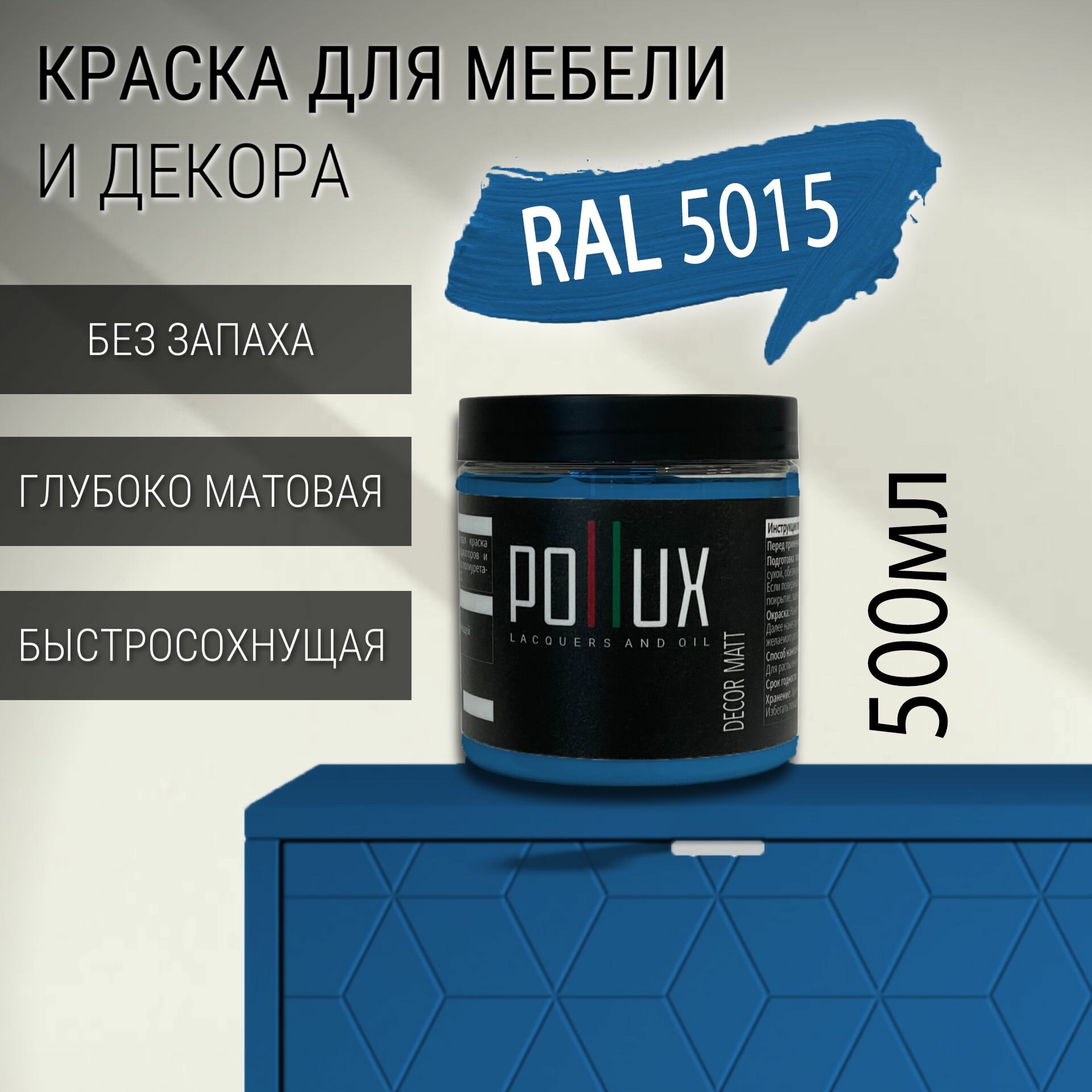 10 цен на Краска для мебели без запаха матовая быстросохнущая для кухни / дерева / декора акриловая Pollux Decor Matt, объем 0,5л, цвет небесно-синий (RAL 5015)