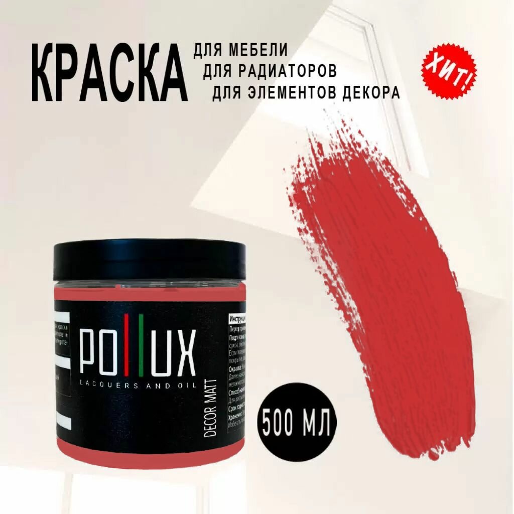 Краска для мебели / кухни / радиаторов акриловая без запаха быстросохнущая матовая Pollux Decor Matt, объем 0,5л, цвет красный (RAL 3028) информация: