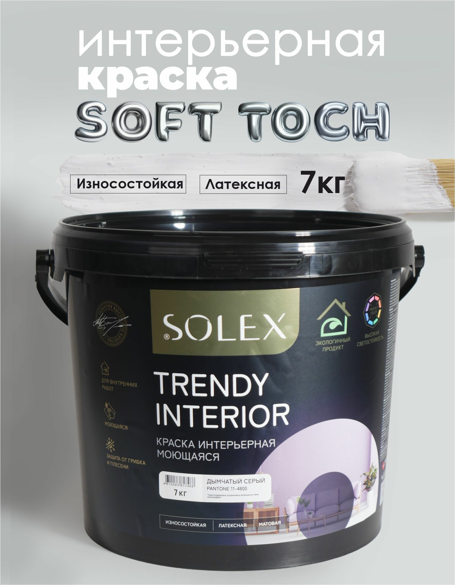 Краска для стен и обоев интерьерная моющаяся, TRENDY INTERIOR, SOLEX - дымчатый серый (7 кг.) информация: