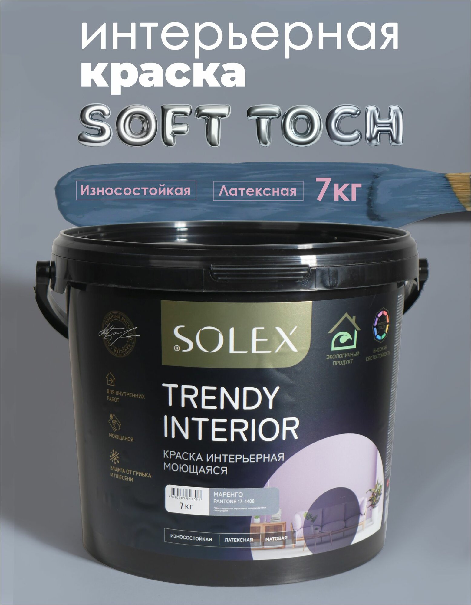 Краска для стен и обоев интерьерная моющаяся, TRENDY INTERIOR, SOLEX - маренго (7 кг.) информация: