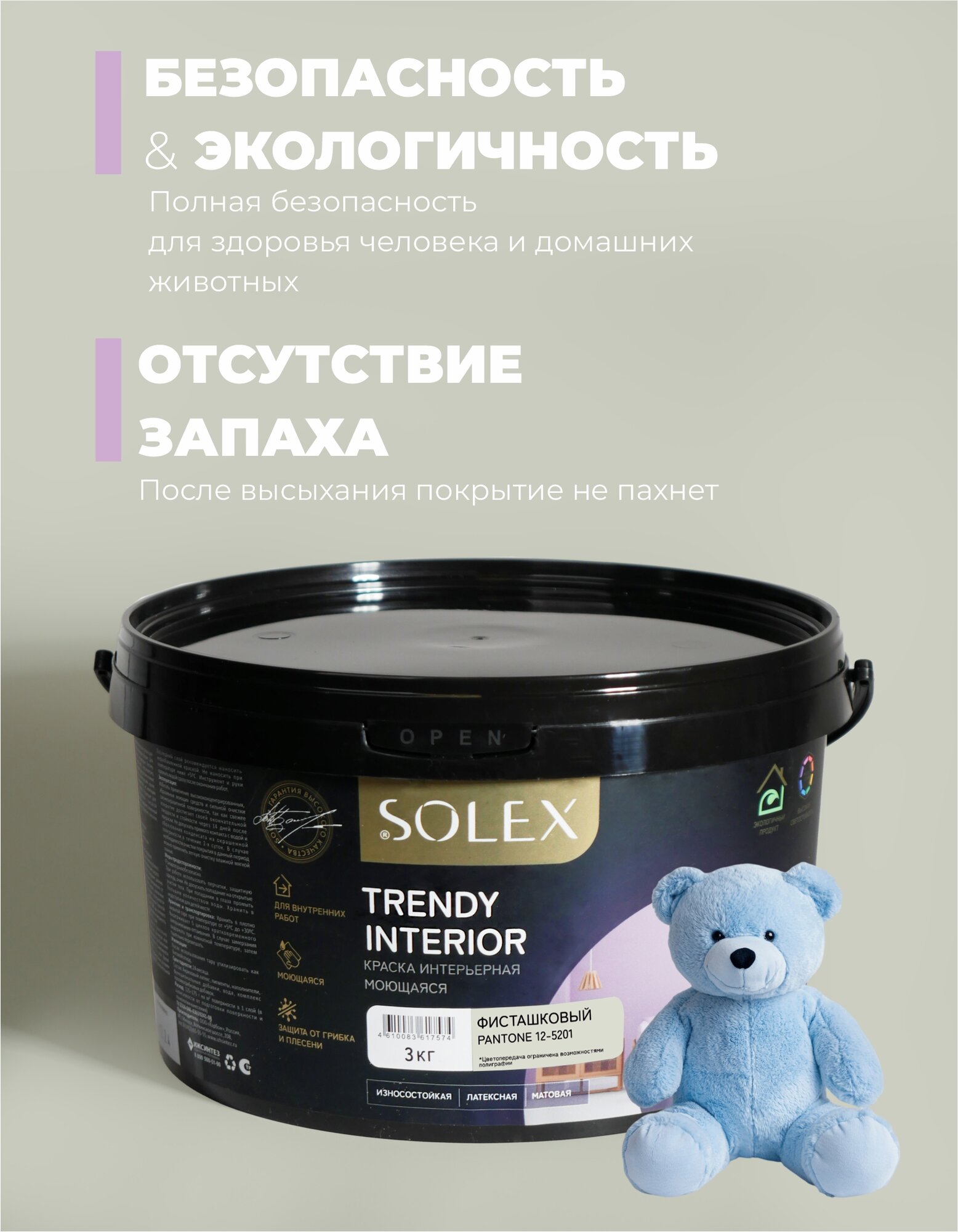 10 цен на Краска для стен и обоев интерьерная моющаяся, TRENDY INTERIOR, SOLEX - фисташковый (3 кг.)