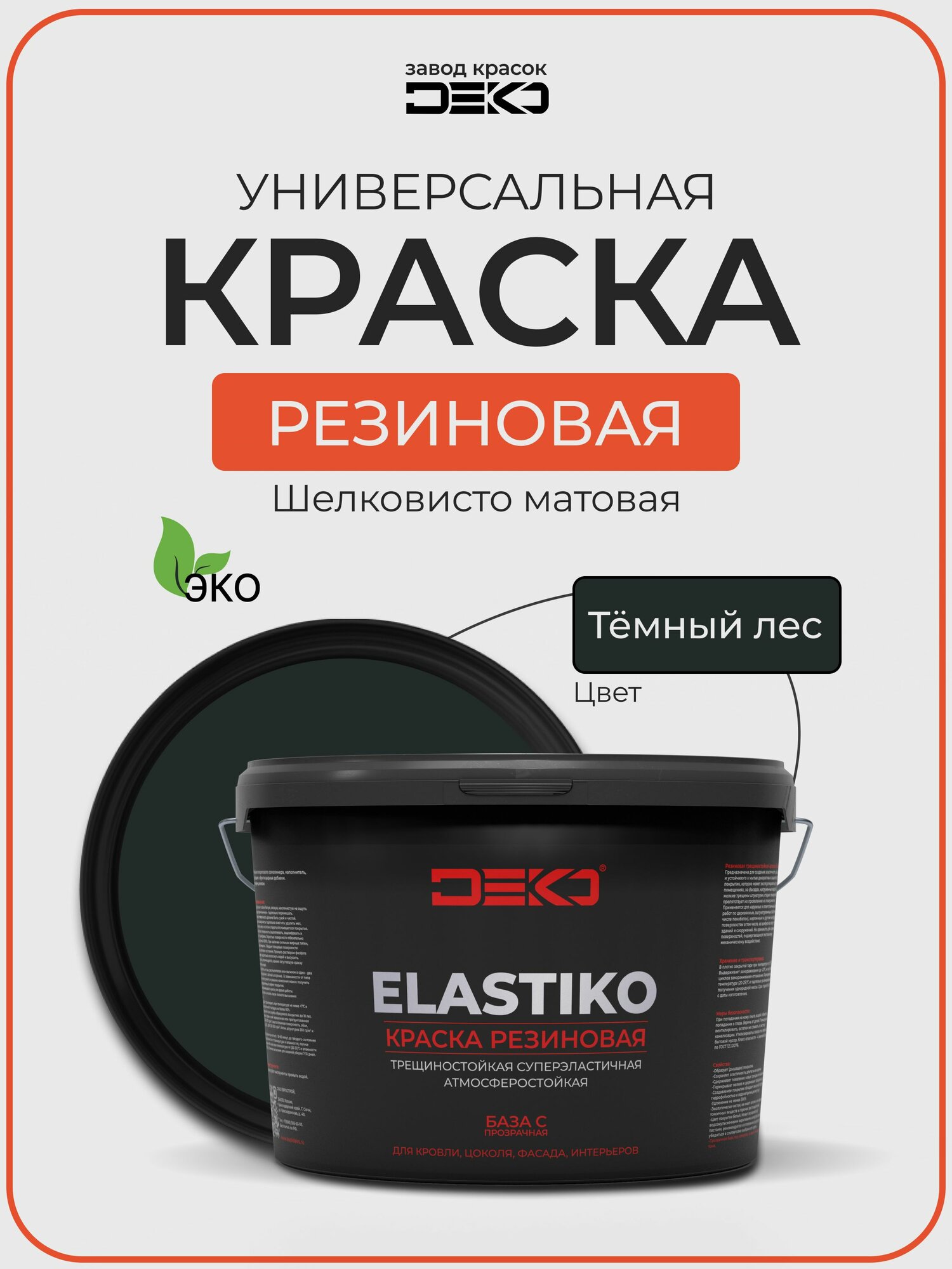 10 цен на Краска резиновая акриловая DEKO ELASTIKO, цвет тёмный ЛЕС 2.5кг. Для влажных помещений, фасадов, стен и потолков