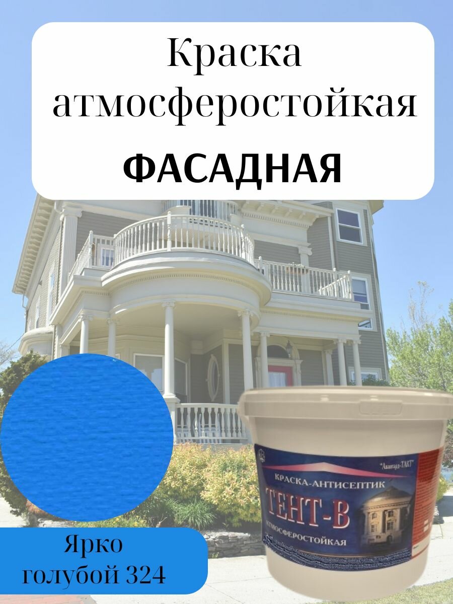 Краска фасадная атмосферо влагостойкая без запаха, быстросохнущая светостойкая акриловая матовая цвет Ярко голубой (1кг) информация: