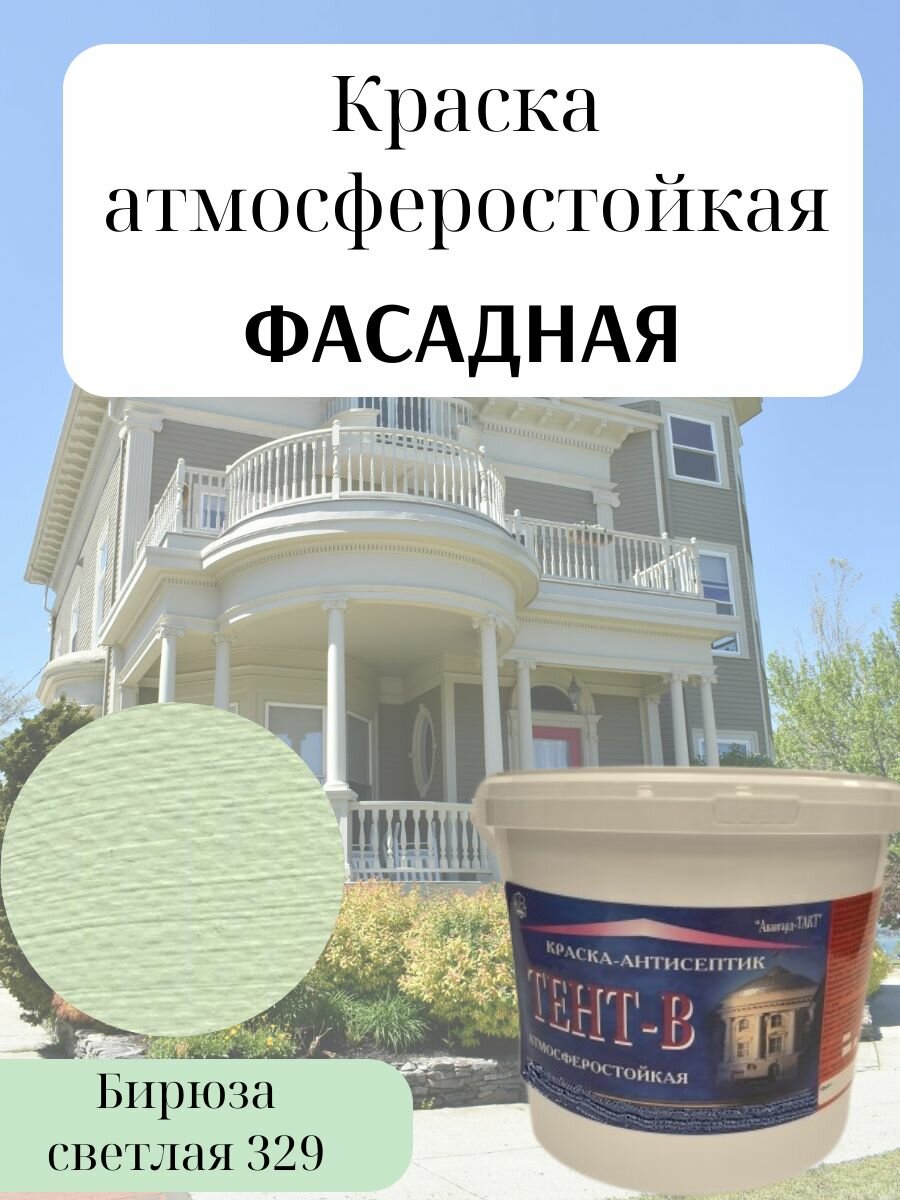 Краска фасадная атмосферо влагостойкая без запаха быстросохнущая светостойкая акриловая матовая цвт Бирюза светлая (5кг) информация: