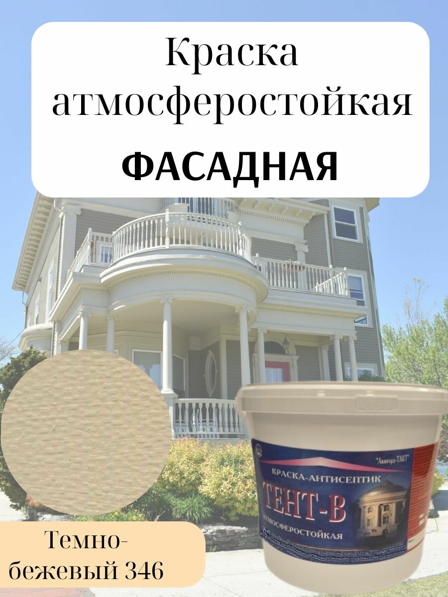 Краска фасадная атмосферостойкая, влагостойкая без запаха, быстросохнущая светостойкая акриловая цвет Темно-бежевый(1кг) информация: