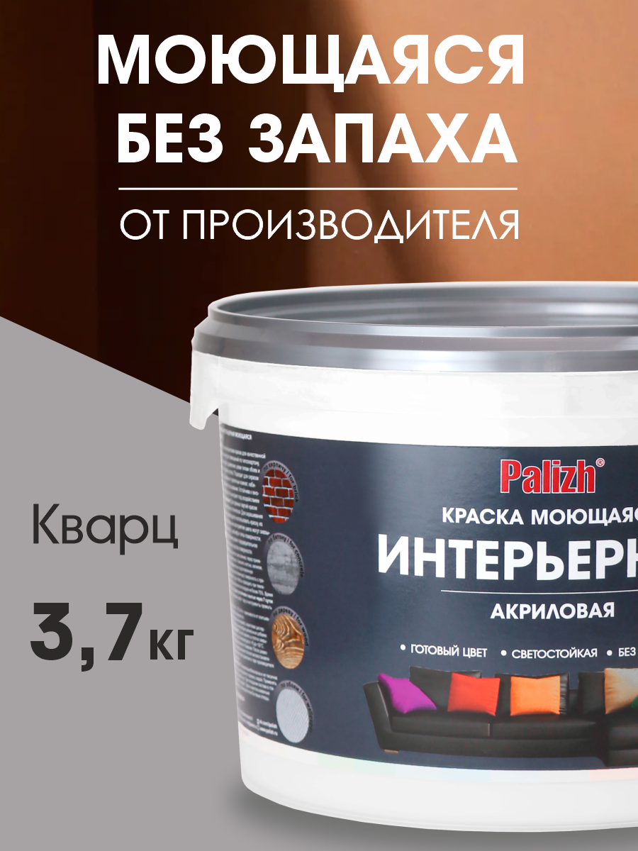 Краска для стен, обоев и потолков акриловая моющаяся интерьерная матовая цветная "Palizh" (3,7 кг), серый кварц RAL 7040 информация: