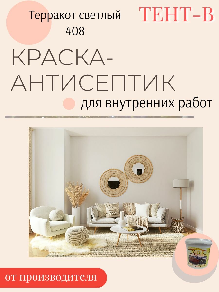 Краска-антисептик интерьерная для стен и потолков, моющаяся, без запаха, матовая, акриловая цвет Терракот светлый (5кг) информация: