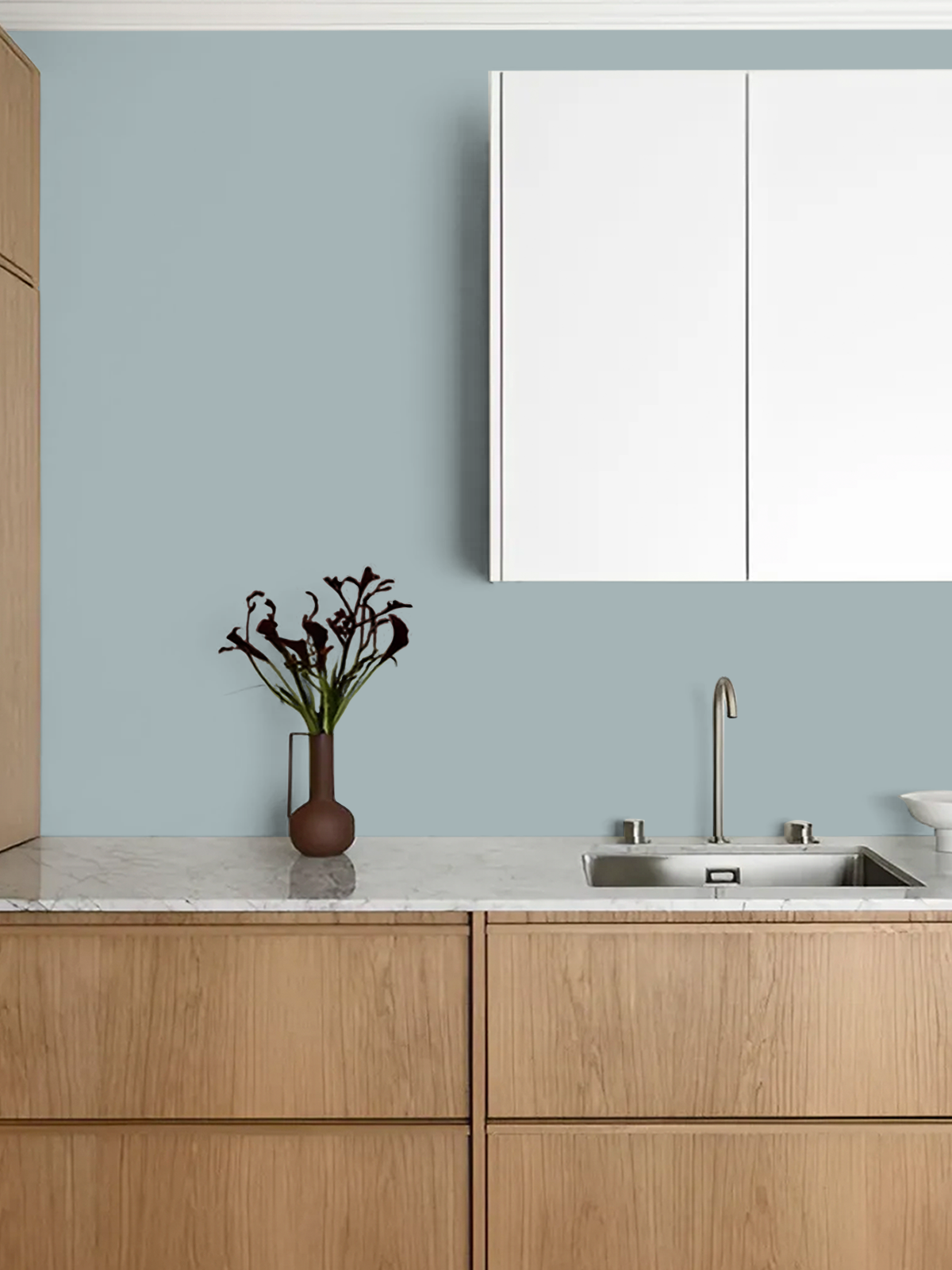 Краска акриловая, моющаяся для стен и влажных помещений, кухни и ванной комнаты 1.1л DET599 Дымчато-голубой 1 150 ₽