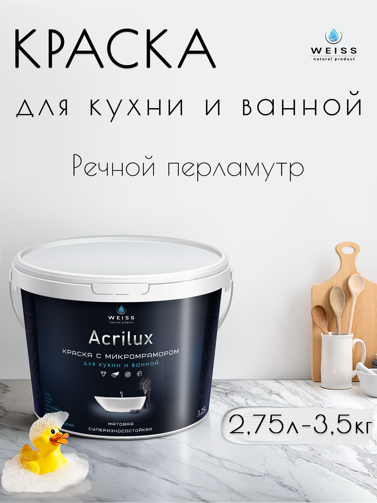 Краска акриловая, моющаяся для стен и влажных помещений, кухни и ванной комнаты 2.75л LG 106 речной перламутр информация: