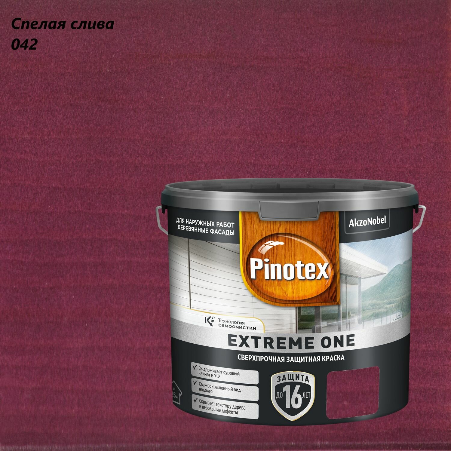 Краска сверхпрочная для деревянных фасадов Pinotex Extreme One (2,5л) спелая слива 042 информация: