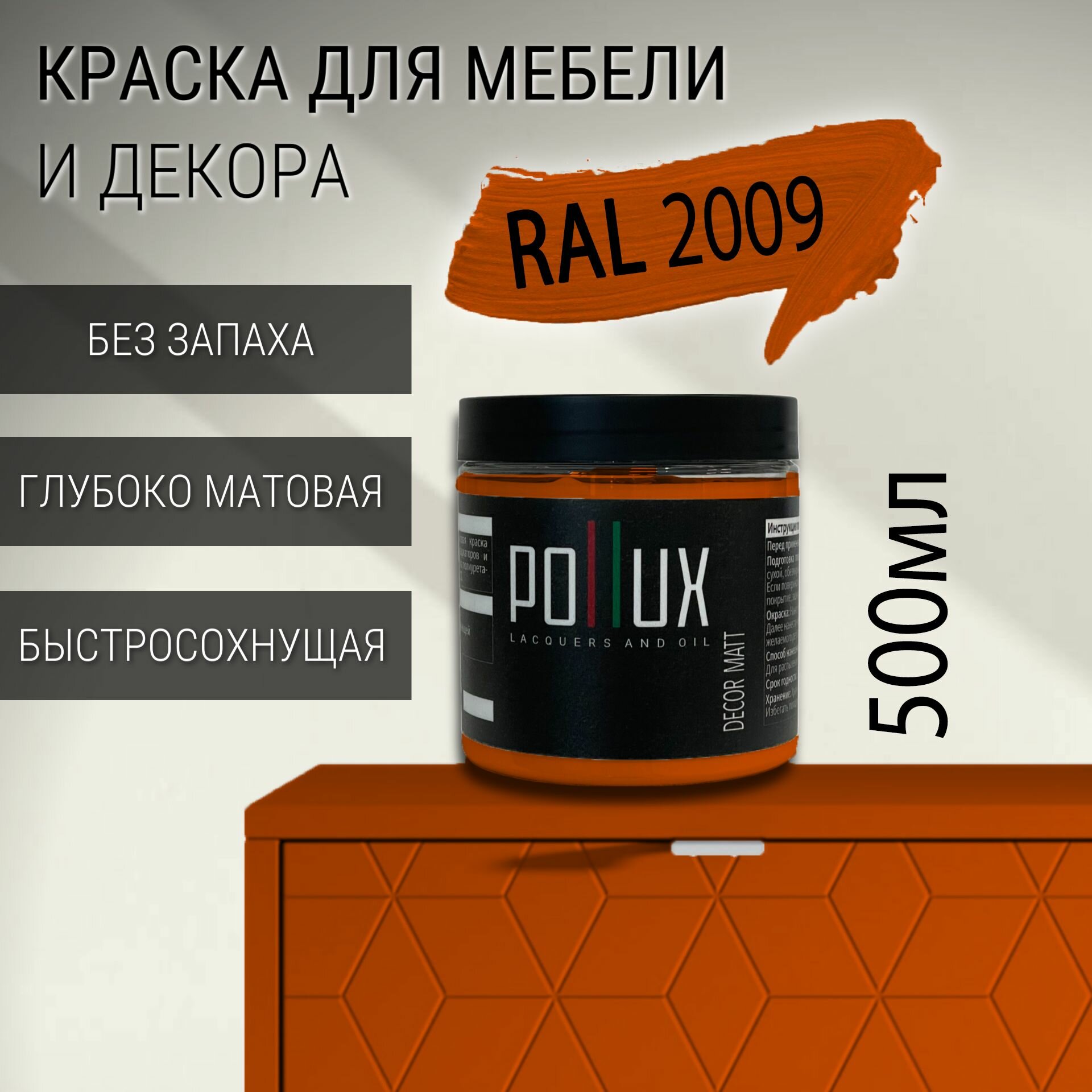 10 цен на Краска для мебели без запаха матовая быстросохнущая для кухни / дерева / декора акриловая Pollux Decor Matt, объем 0,5л, цвет транспортный оранжевый (RAL 2009)