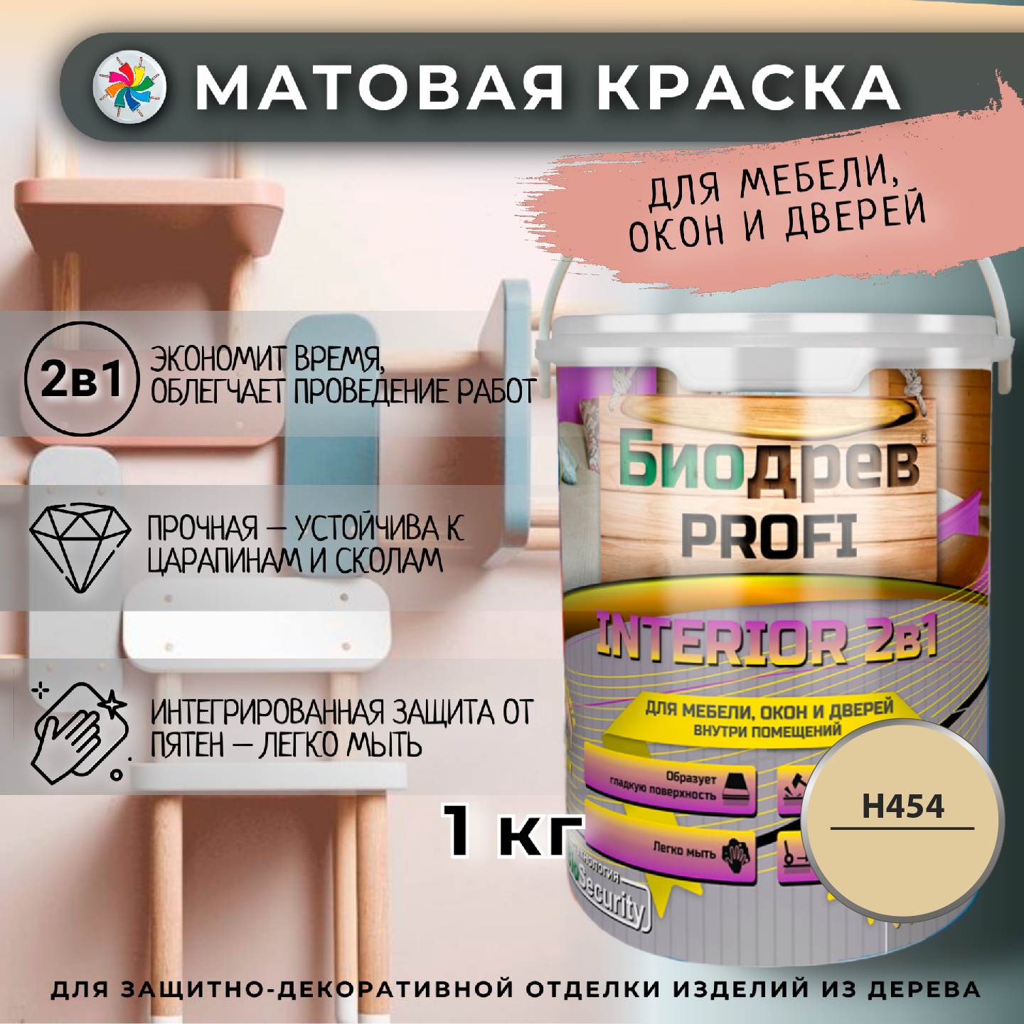 10 цен на Краска для мебели, Биодрев PROFI INTERIOR 2в1, H454/горчичный, светло-желтый, 1кг