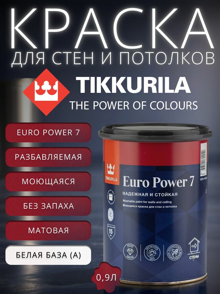 Краска моющаяся Tikkurila Euro Power 7 для стен и потолков база А белая 0.9 / Тиккурила Евро Пауэр 7 информация: