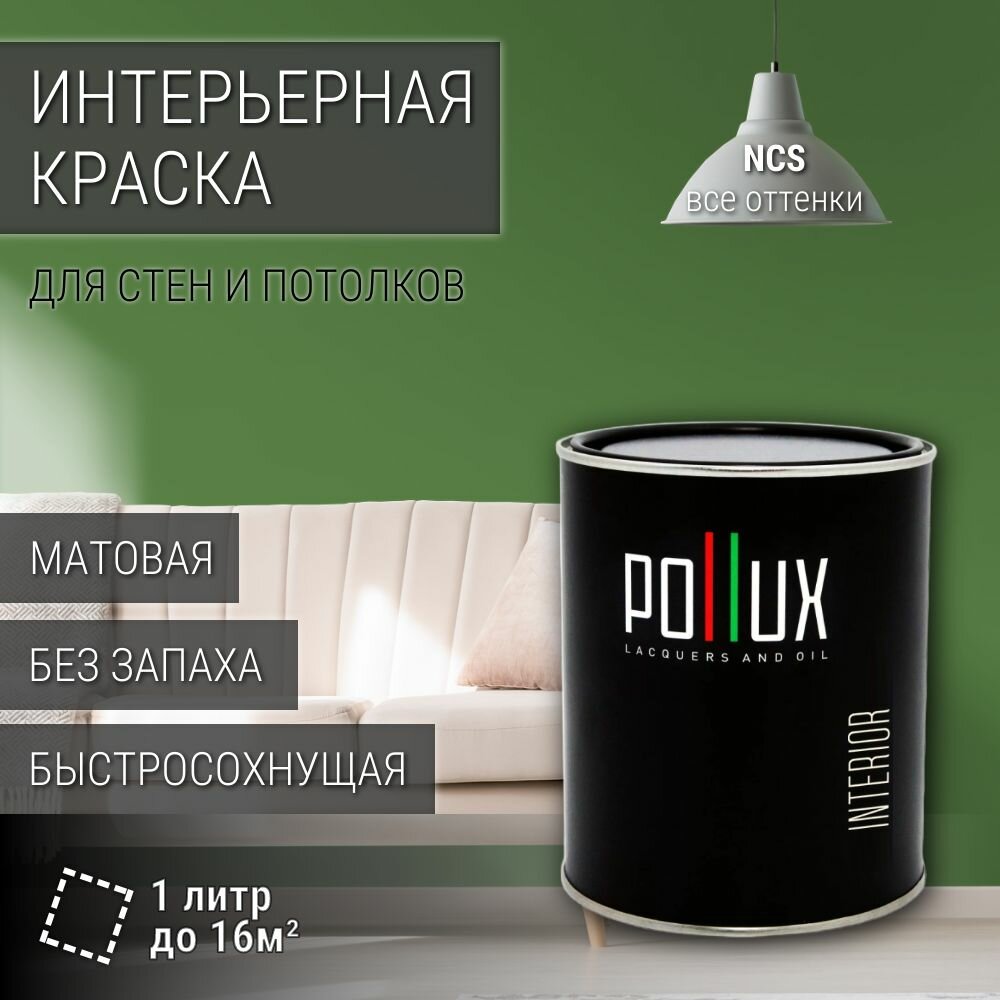 Краска моющаяся интерьерная для стен и потолков, Pollux INTERIOR без запаха, быстросохнущая, акриловая, матовое покрытие, цвет NCS S 4040-G30Y, 1л. информация: